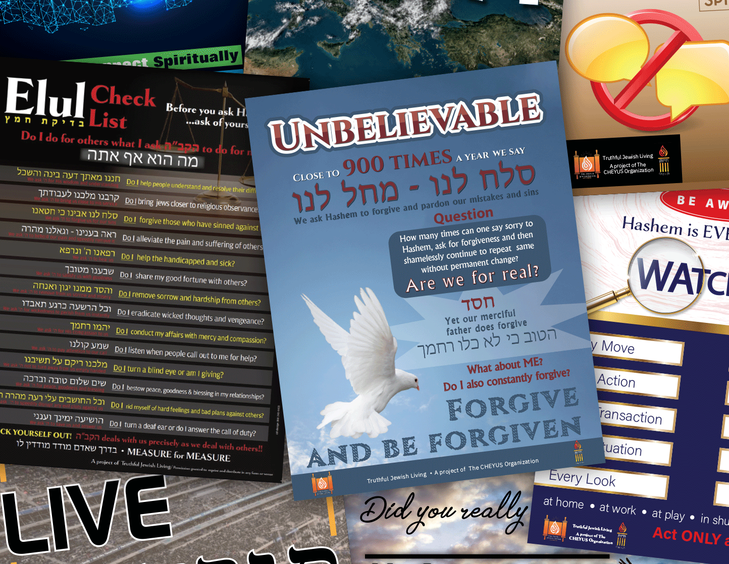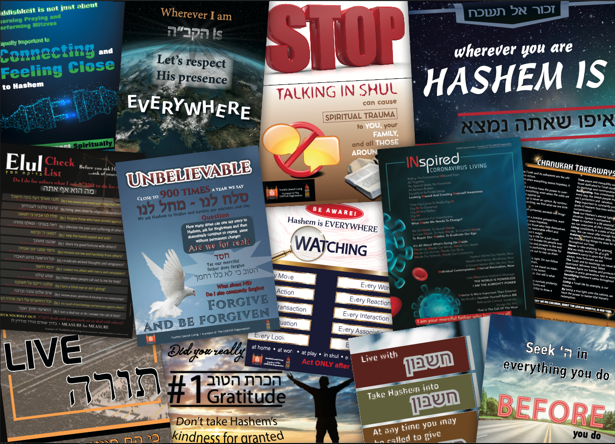 Boom! Jews walk into shul. Immediately, Truthful Jewish Living posters and flyers attract their attention. A spiritual pop up, alerting them to Jewish essentials possibly overlooked in the past.